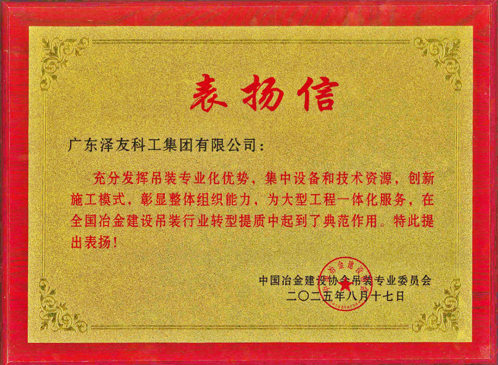 广东泽友科工集团凭借其吊装专业化优势,整合设备与技术资源,创新施工模式,以出色组织能力为大型工程一体化服务赋能,在全国冶金建设吊装行业转型提质中成为典范。