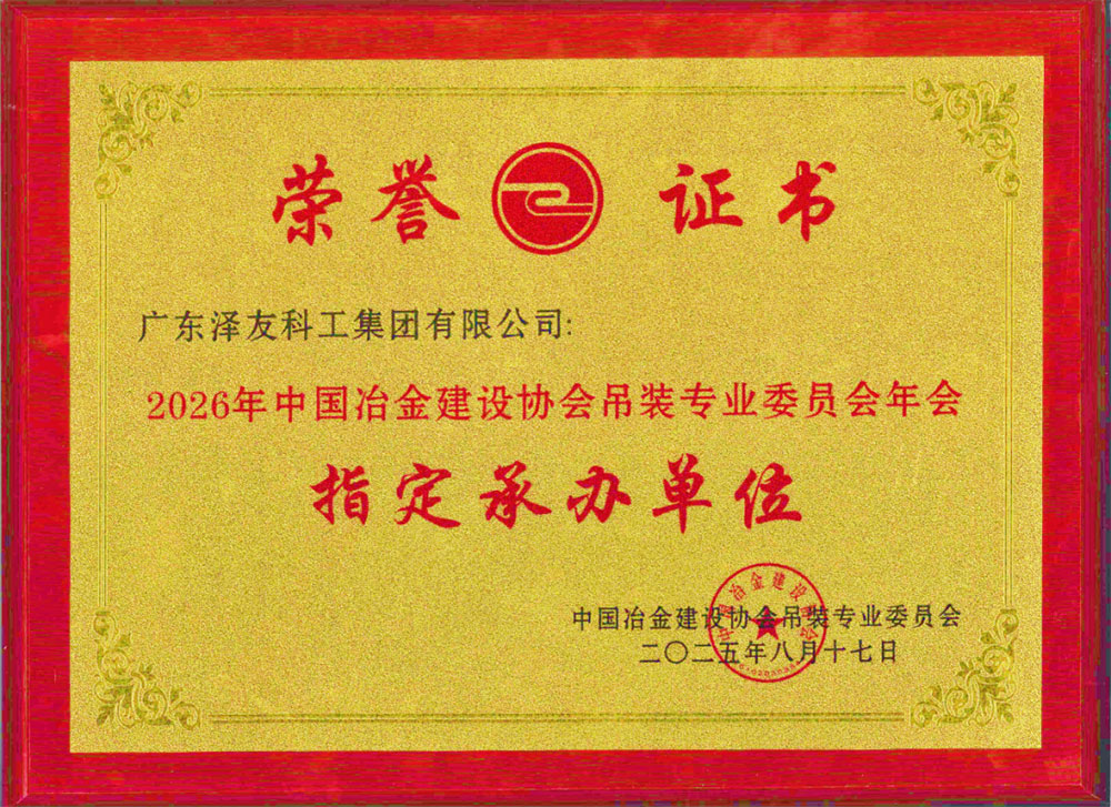 泽友科工被中国冶金建设协会吊装专业委员会选定为“2026年中国冶金建设协会吊装专业委员会年会指定承办单位”!能从众多同行中脱颖而出,背后是行业对泽友影响力、组织力、专业度的深度信赖。