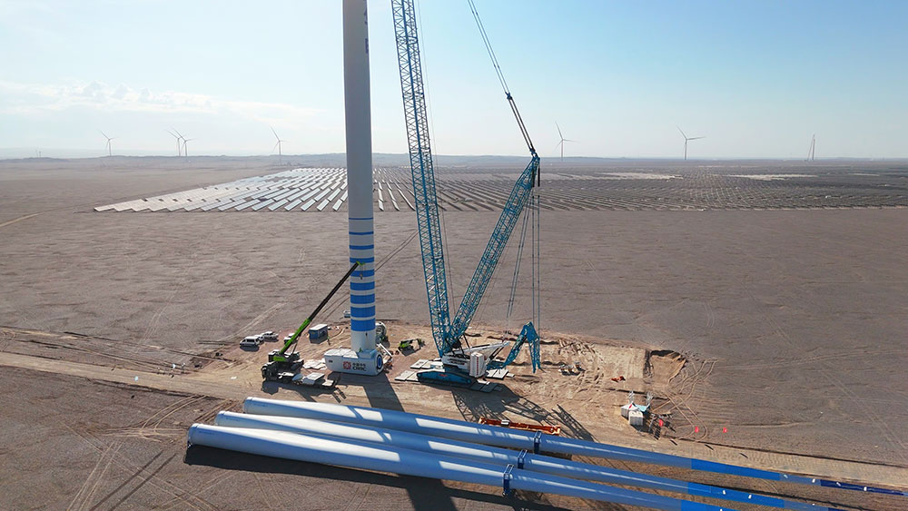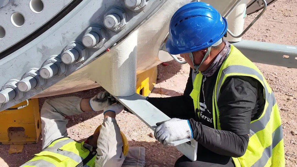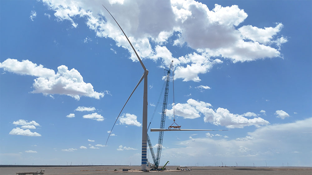 当最后一片叶片成功安装到轮毂上时,夕阳的余晖洒在戈壁滩上,给整个施工现场披上了一层金色的纱衣。