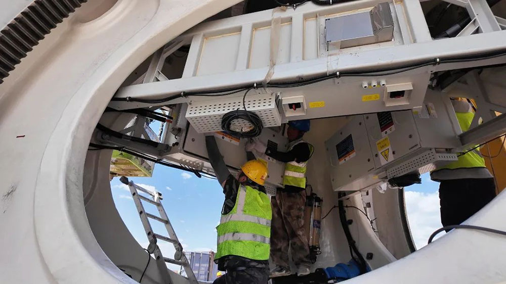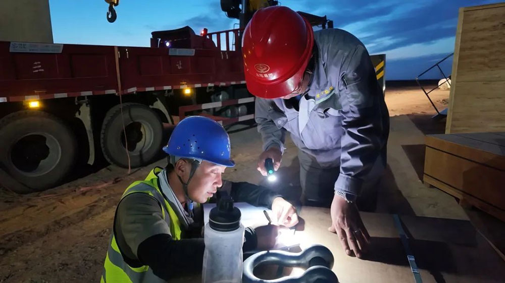 在戈壁荒漠中,吊装组的成员们全神贯注,紧密配合。他们顶着炎炎烈日,与狂风沙尘对抗,每一个动作都精准而迅速。