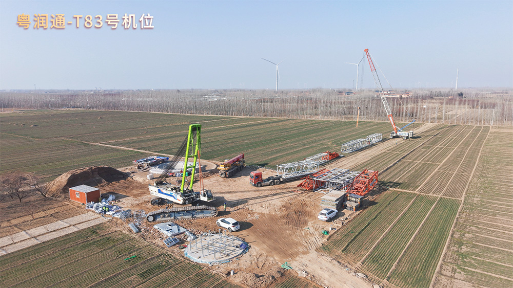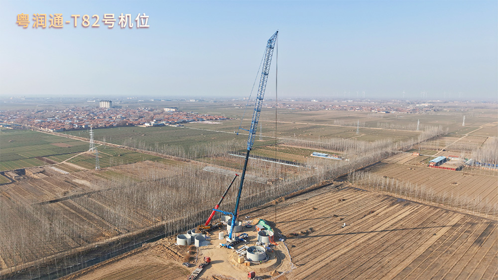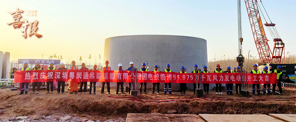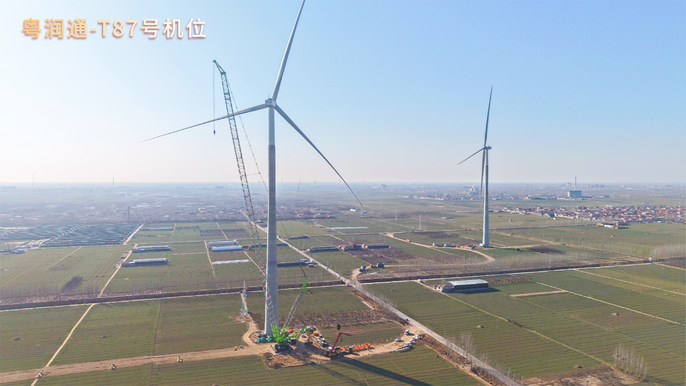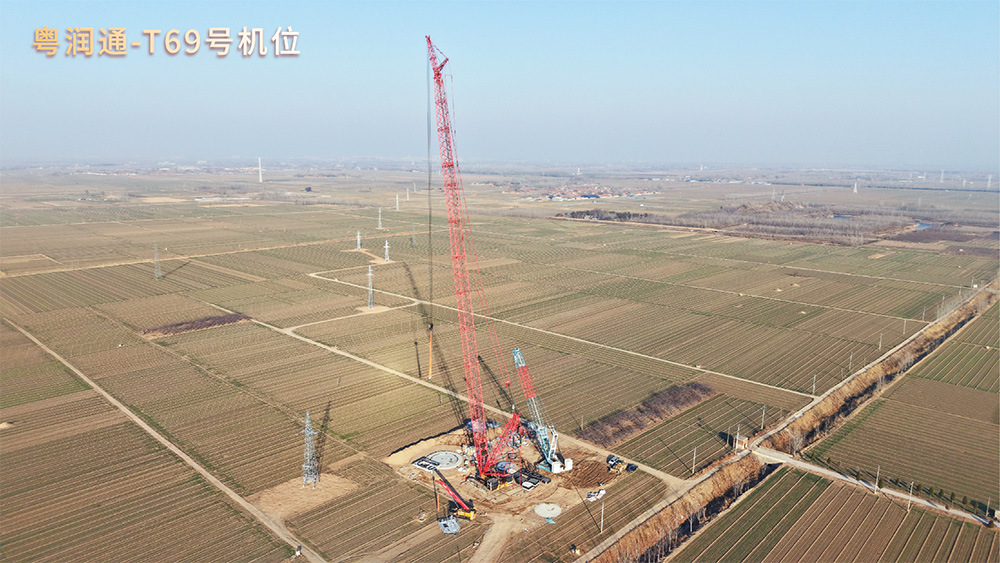 深圳市粤润通吊装运输有限公司多机位协同攻坚 国电投临清51.875万千瓦风力发电项目全速推进中